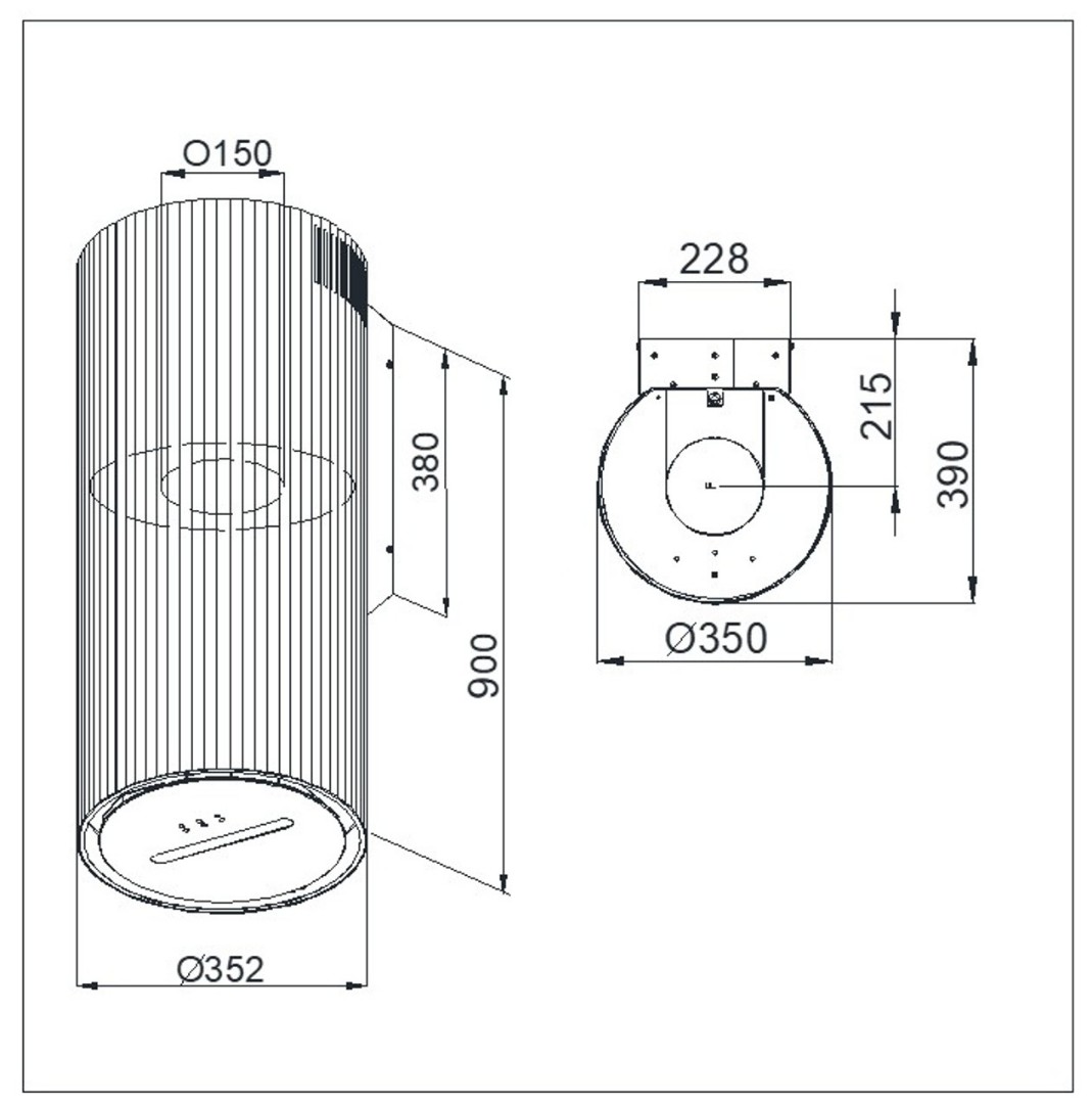 • Размеры: диаметр 350 мм, высота 900 мм
